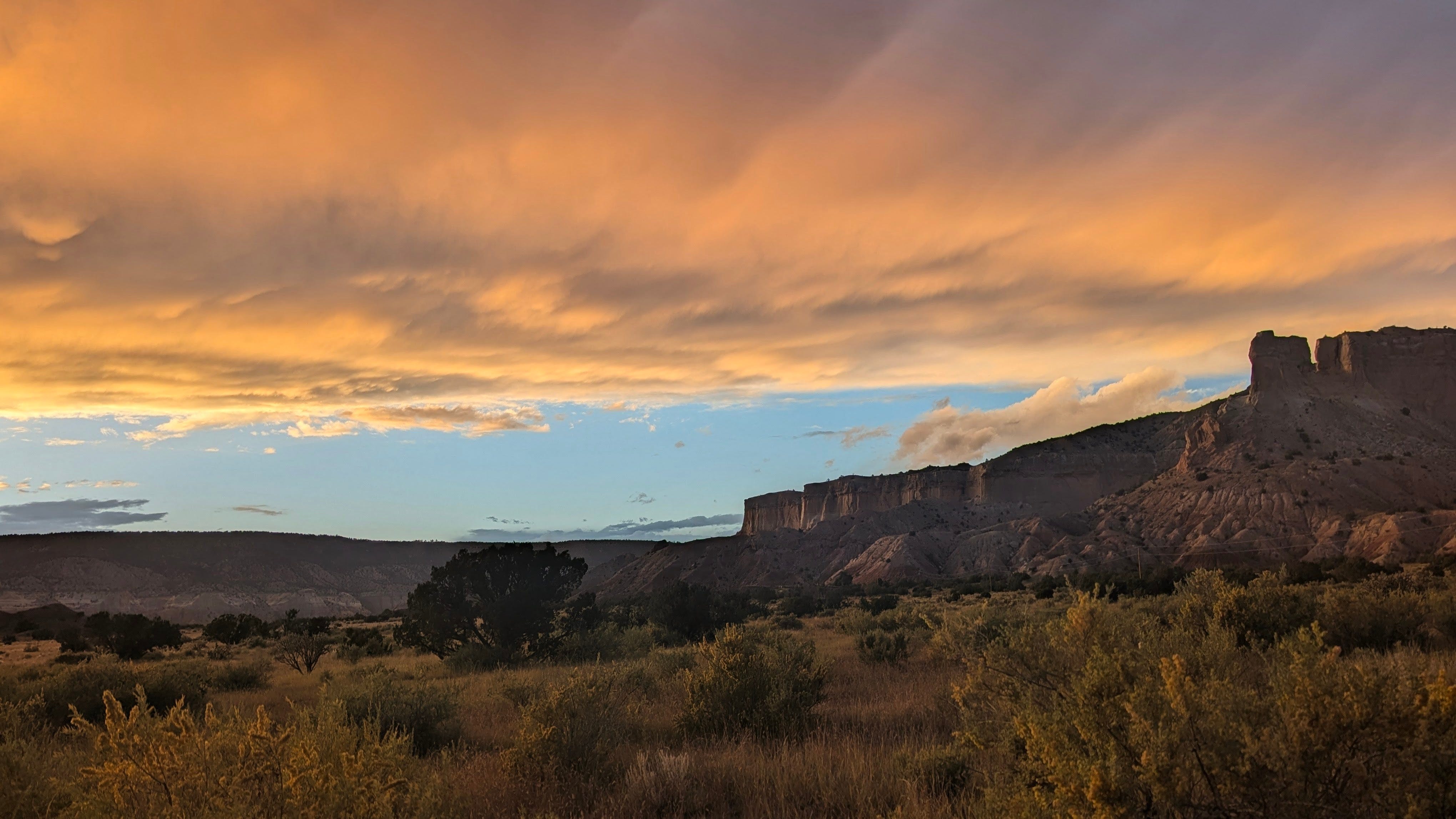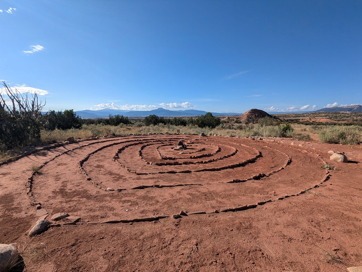 The event that drew me to Ghost Ranch for that week was a women’s retreat focused on “soul tending in times of uncertainty.” It was, for me, not only a chance to tend to my exhausted, grieving soul but also a chance to breathe life into a faint flame I had felt flickering to life within me. A new awakening. It has now been six months since my week at Ghost Ranch, and I am still finding my way along the path this experience opened for me. Each time I return, in my head and heart, to this place, blanketed with sagebrush and the light of a full Harvest Moon, I remember the feeling of complete alignment and aliveness I experienced. Even now, I recall the gentle breeze that stirred around me as I sat on a patch of dry earth, holding a white, sand-crusted pebble in my hand and gazing admiringly at a Canyon Towhee as he flitted about. As I took in the sounds, sensations, smells, and vibrations of the earth, I also began to hear my own voice, long drowned out by the crushing noise of responsibility, caregiving, anxiety, and duty.